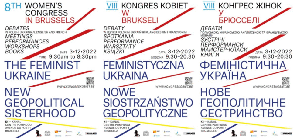 The 8th Congress of Women in Brussels will take place on Saturday, 3 December 2022 at KANAL – Center Pompidou (avenue du Port 1). The title of the Congress is ‘FEMINIST UKRAINE: a new geopolitical sisterhood’.